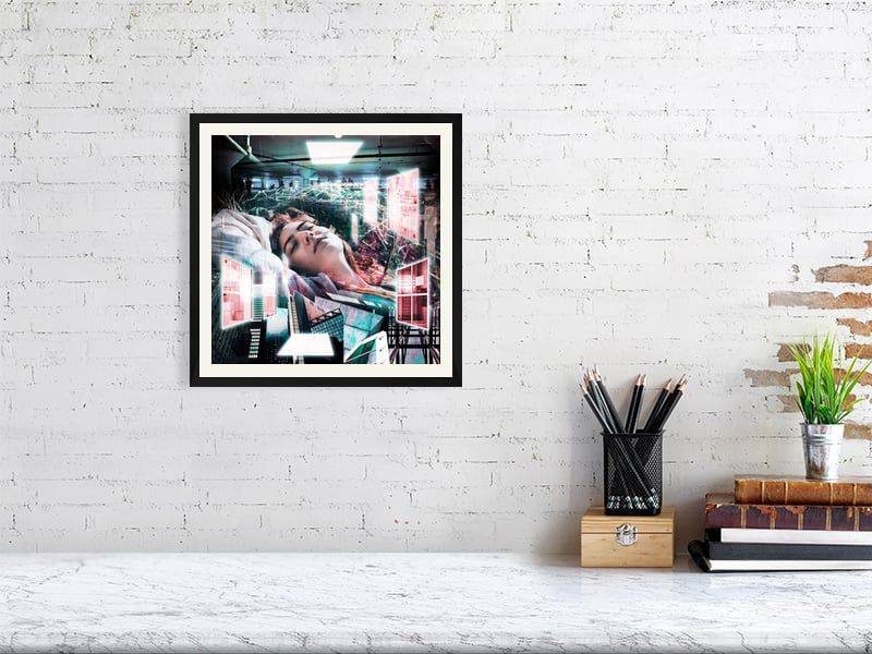 Alternative Reality 1 is the first in a series of three mixed-media works exploring the architecture of parallel states. Layered imagery, subtle geometry and ethereal form converge to create a composition that feels both familiar and displaced. A quiet portal into the imagined.